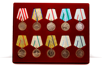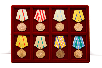 – 14 копий орденов, изготовленных из металла с покраской;